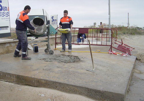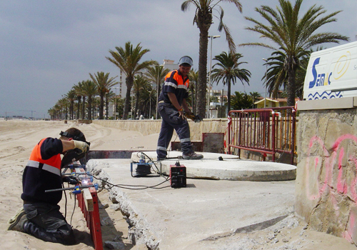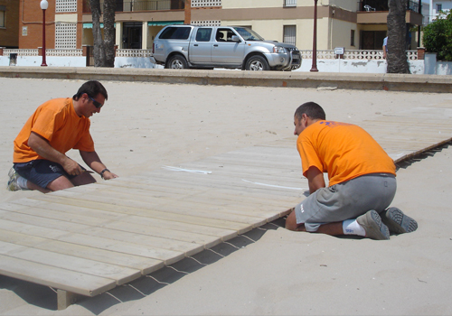 - Una de las tareas más comunes en el servicio de mantenimiento es la recolocación de las pasarelas de playa, que debido a su posición sobre la arena, se descolocan continuamente, así mismo, se reparan desperfectos en las mismas.