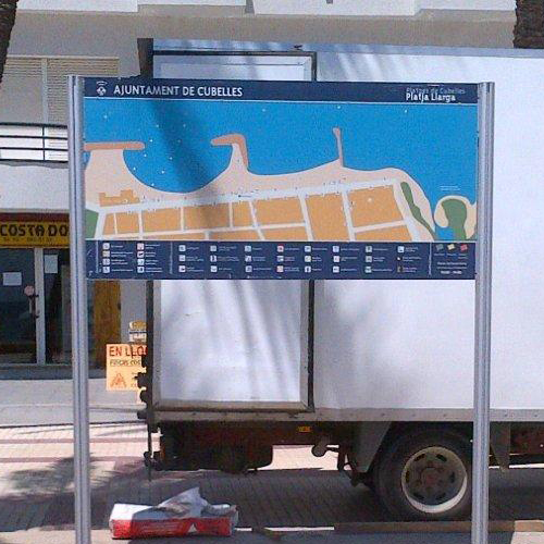 Características Carteles totalmente a medida de sus necesidades Estructuras en diversos materiales: acero inox, pintado, madera tratada, hormigón... Diseño personalizado del grafismo Amplia variedad de colores y formas Anclajes sobre pavimento o lastres enterrados Ficha técnica